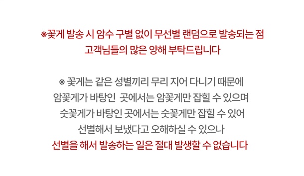 제철 가을 톱밥 꽃게! 암수랜덤발송