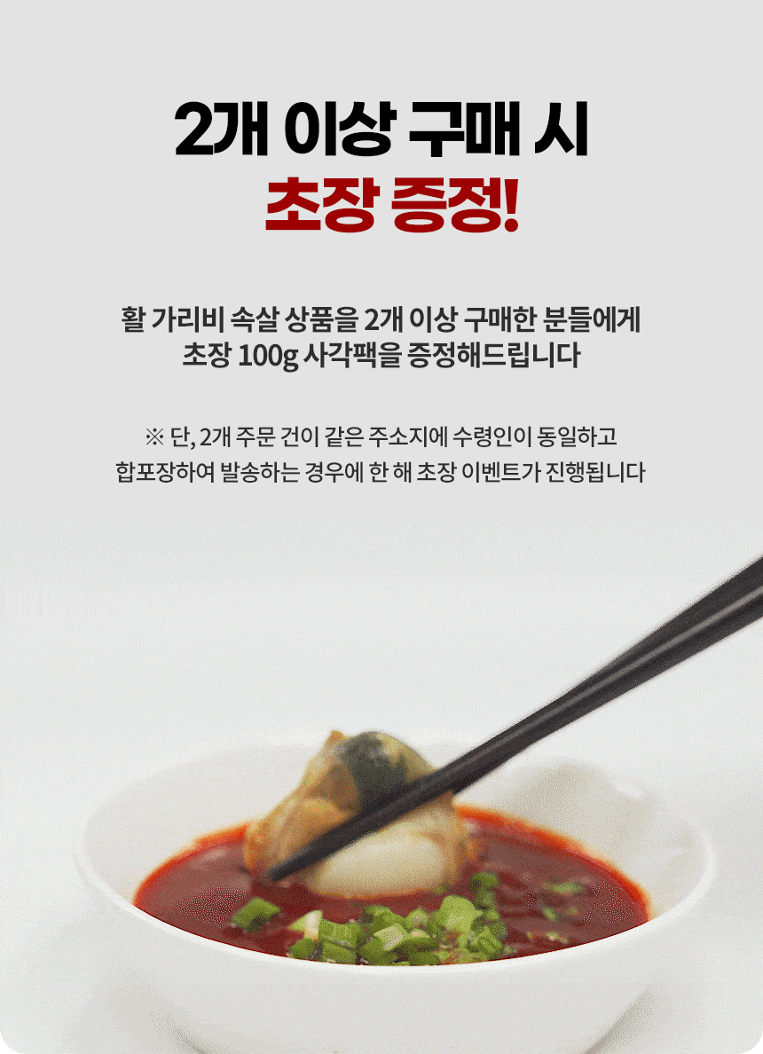 2건 이상 구매시 초장증정 + 1000원 할인 쿠폰 지급