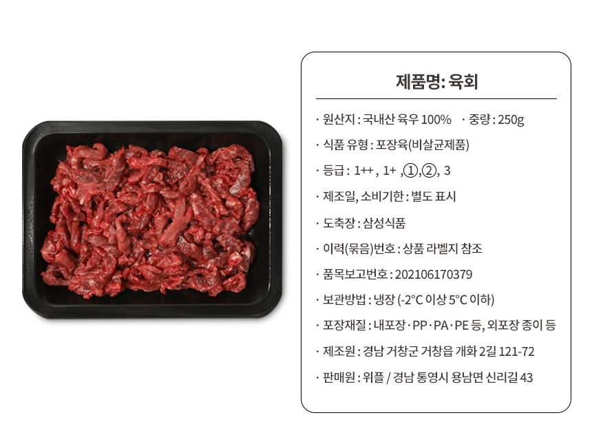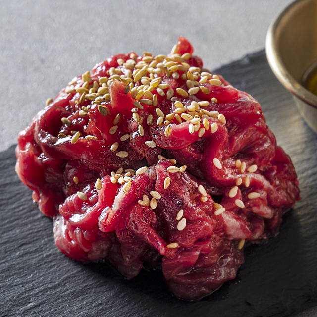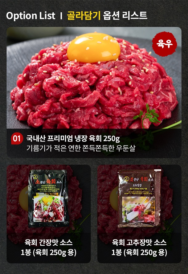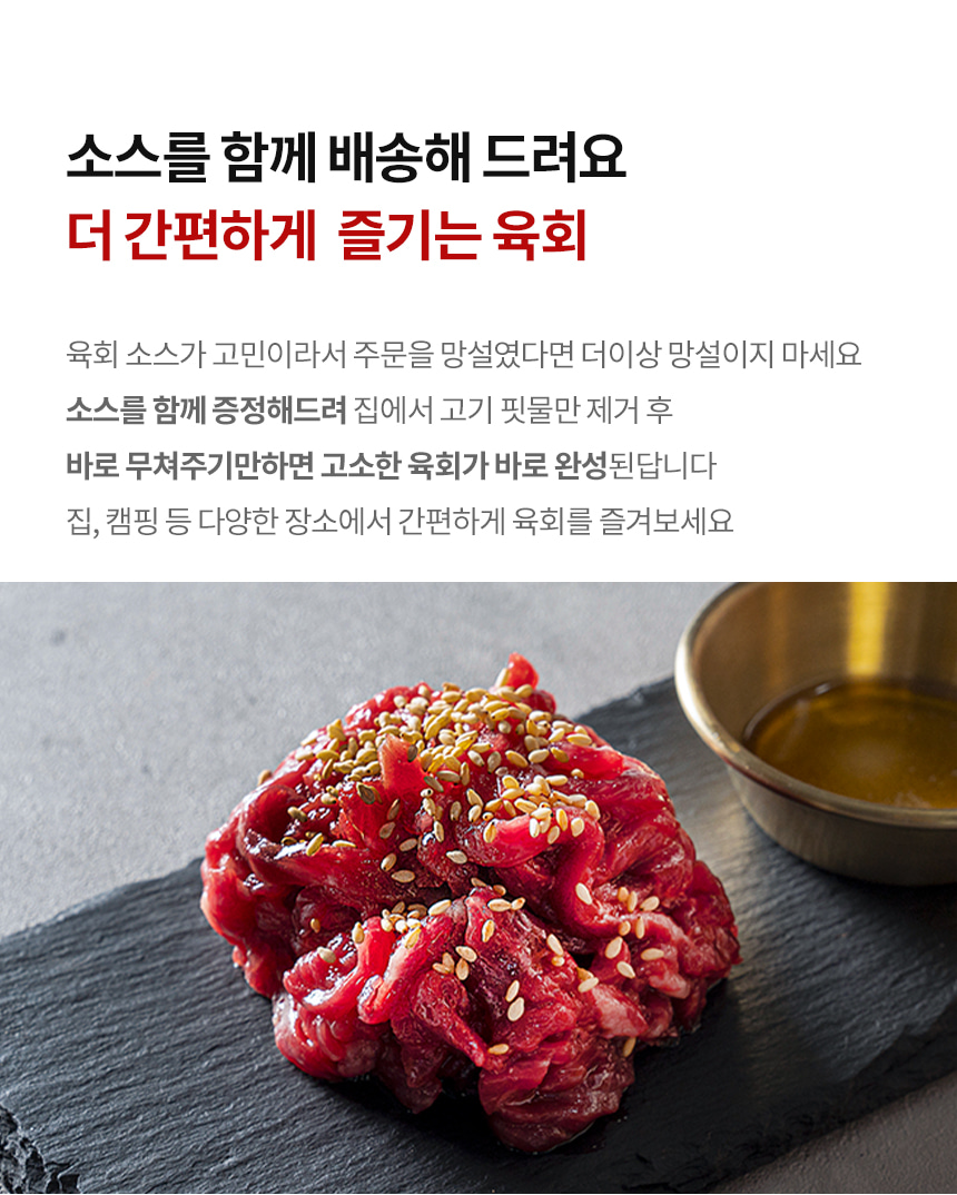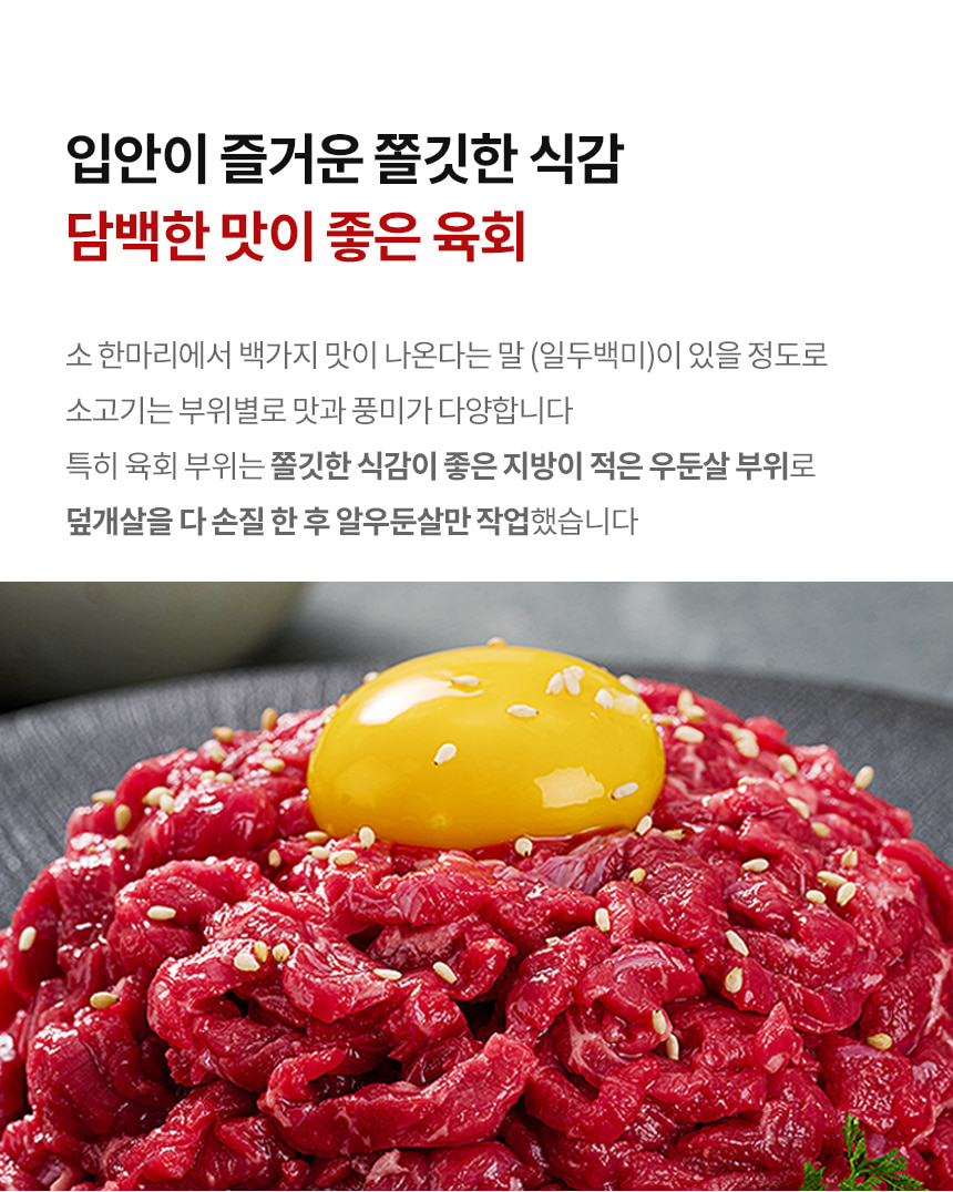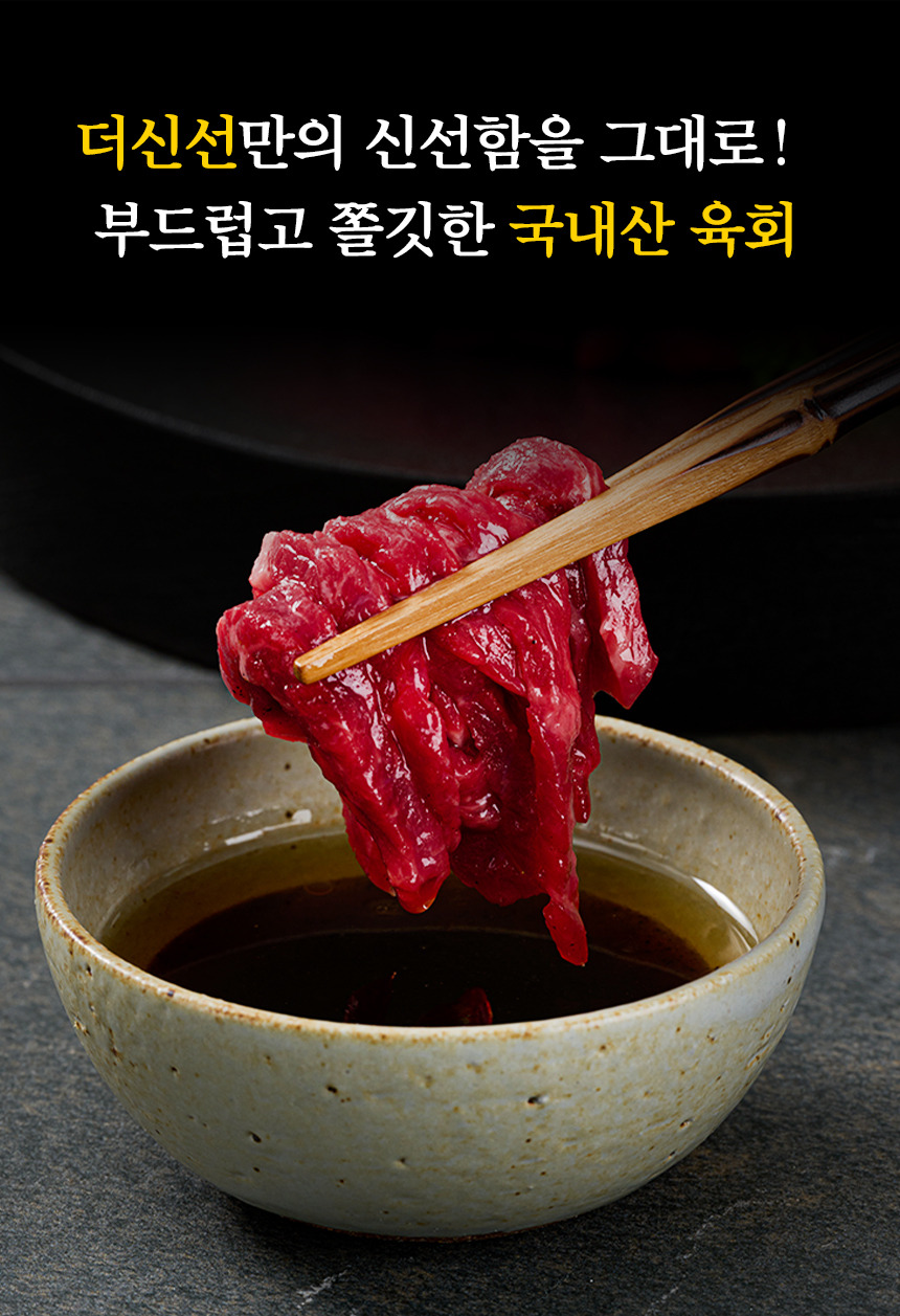 쫄깃하고 담백한 육회 간장,고추장 소스 선택 가능