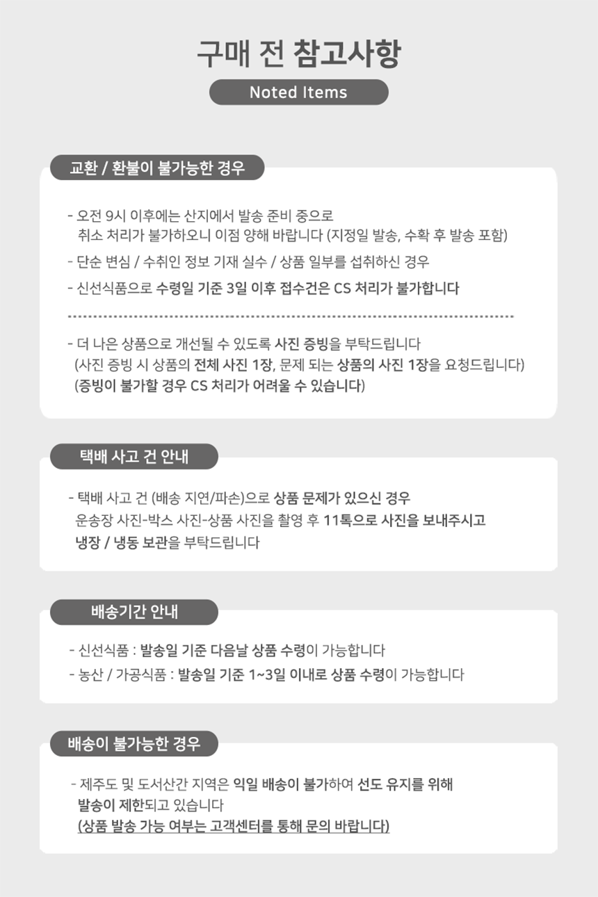 · 상품 불량 사유와 사진을 남겨 주시면 빠른 처리가 가능합니다.